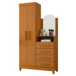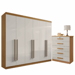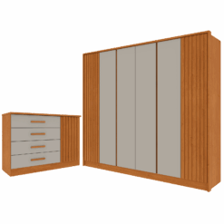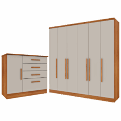Guarda-Roupa 3 Portas + Cômoda 4 Gavetas com Sapateira + Cama Solteiro Bela Nature – MADEC/VJ MÓVEIS