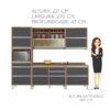 Armário Aereo Porta de vidro (79cmx118,50cmx32cm); Armário Aereo 2 Portas (79cmx79cmx32cm); Balcao 1 Porta 4 Gavetas (86,5cmx118,50cmx47cm); Balcao 1 Porta e 1 Gaveta(86,5cmx79cmx47cm); Paneleiro (218cmx68cmx47cm)