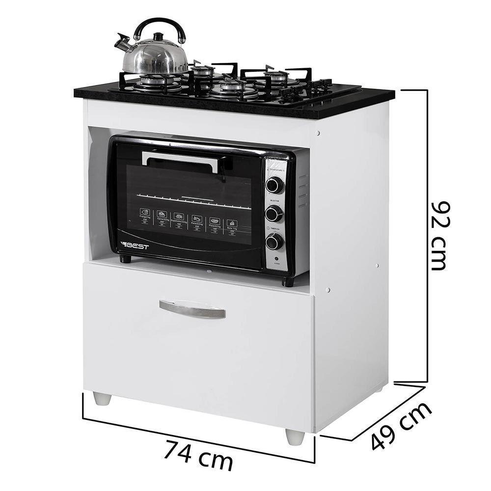 Material da estrutura: MDP, Acabamento: Pintura U.V Fosco, Peso máximo que suporta: 55kg, Número de Porta: 1, Material do puxador: Plástico, Material dos Pés: Plástico, Altura dos Pés: 5cm, Tipo de porta: Basculante, Possui recorte para Cooktop, Medida do Recorte para Cooktop: 55cmx38cm, Material da dobradiça: Metálica, nas medidas: Altura: 92 cm x Largura: 74 cm x Profundidade: 49 cm