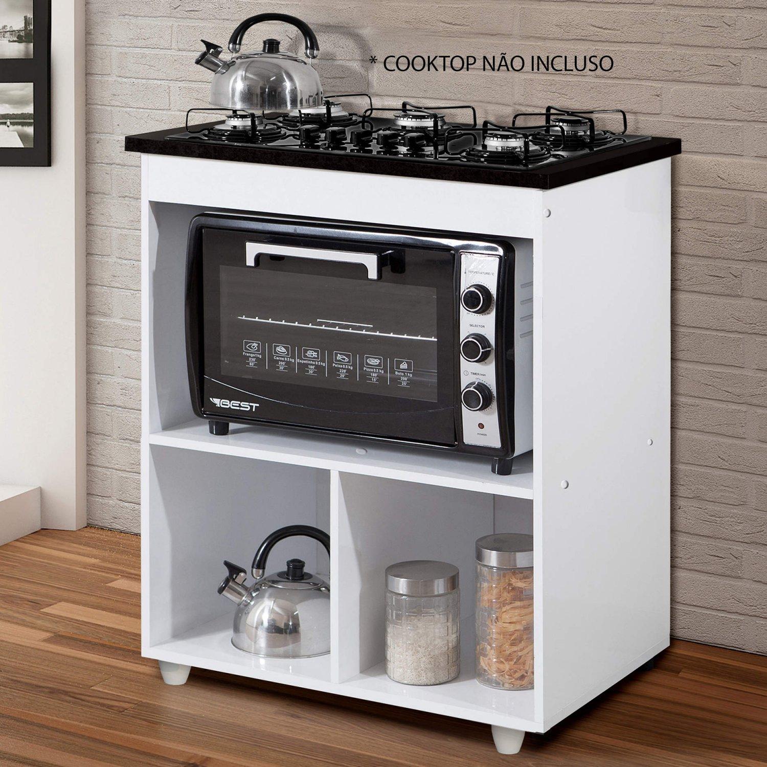 Material da estrutura: MDP, Acabamento: Pintura U.V Fosco, Peso máximo que suporta: 55kg, Número de Porta: 1, Material do puxador: Plástico, Material dos Pés: Plástico, Altura dos Pés: 5cm, Tipo de porta: Basculante, Possui recorte para Cooktop, Medida do Recorte para Cooktop: 55cmx38cm, Material da dobradiça: Metálica, nas medidas: Altura: 92 cm x Largura: 74 cm x Profundidade: 49 cm