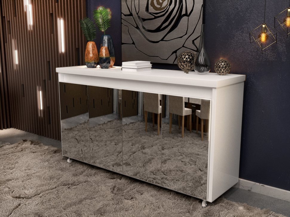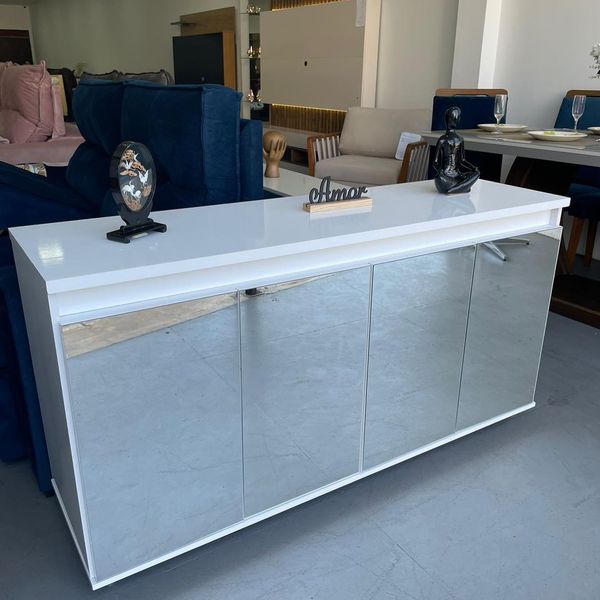 | MATERIAL | Produzido em MDP, 4 Portas de Bater com Dobradiças Metálicas, Rodízio de Silicone com travas e Tampo de 25mm Espelhado |