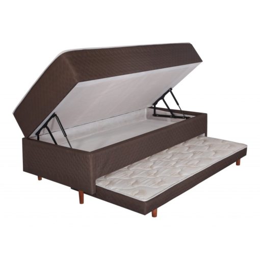 Cama Box Baú Solteiro com Auxiliar Barcelona Marrom – CRISTALFLEX