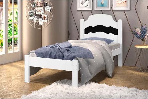 Cama Solteiro Íris Branco/Preto/Branco – VJ MÓVEIS