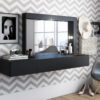 Estrutura 100% MDP, com 2 Portas, sendo uma Basculante com Pistão a Gás e uma de Bater, ambas com Dobradiças Metálicas, 3 Nichos para Objetos Pessoais e Maquiagens e Espelho 46cm x 20cm, com as medidas: Altura: 41 cm x Largura: 100 cm x Profundidade: 33 cm