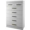 Estrutura 100% MDP, Base em MDF, 7 Gavetas com Corrediças Metálicas, sendo 2 com Chaves, com as medidas: Altura: 135 cm x Largura: 86 cm x Profundidade: 45 cm