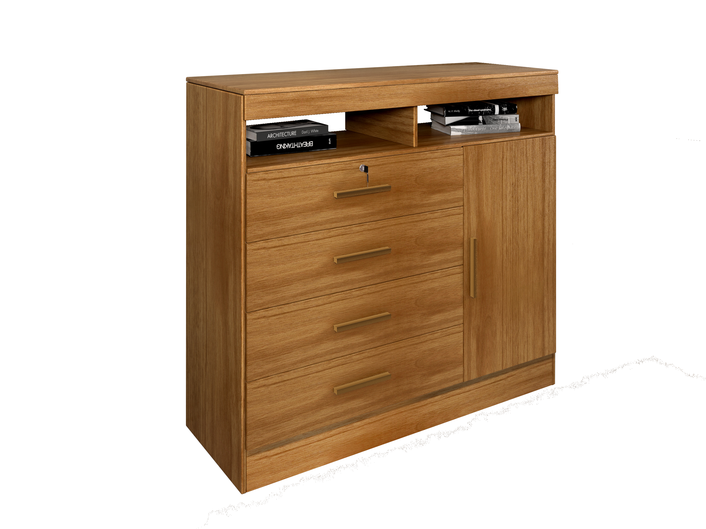 – Quatro gavetas, sendo uma com chave