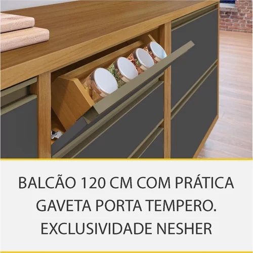 – Balcão 120 com gaveta porta-tempero e organizador de talheres