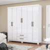 Guarda-Roupa 6 Portas(Sem Espelho/Com Pés) Áries 1,53 m Branco – CARIOCA MÓVEIS