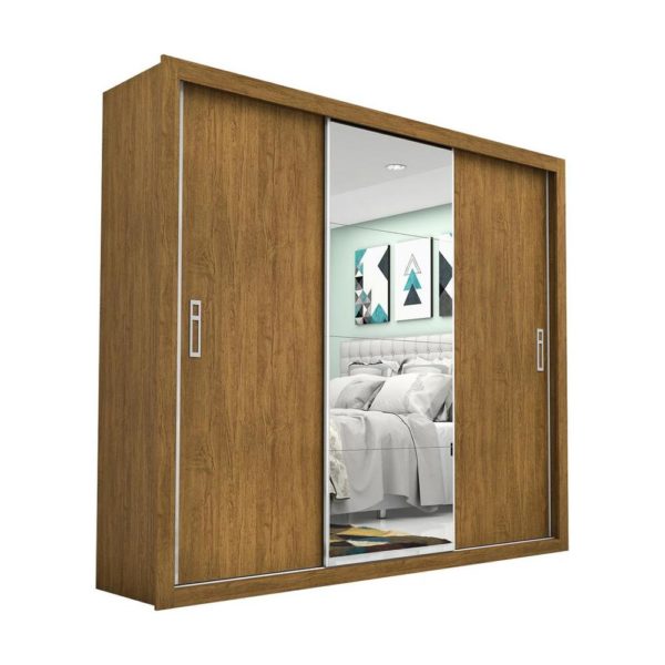 Além do mais, esse belo guarda-roupa possui portas de correr com espelho, trilhos de alumínio para melhor deslizamento das portas, gavetas com corrediças metálicas, puxadores de alumínio e várias repartições internas para alocar melhor suas roupas e pertences.