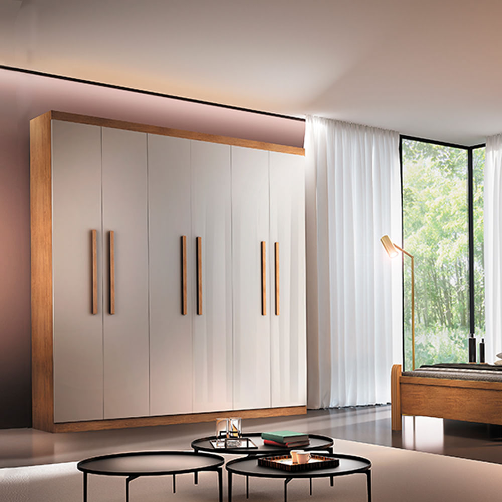 Guarda-roupa Espanha – 6 Portas – Imbuia/OffWhite Com Puxador Imbuia