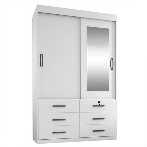 Kit Pé opcional não acompanha o produto. mais informações do produto: número de portas 2 portas recursos 1 espelho número de gavetas 6 gavetas tipo de produto Solteiro fabricante minas plac móveis marca minas plac móveis material do puxador da gaveta plástico garantia do fornecedor 3 meses tipo de corrediça da gaveta metálica simples acabamento da porta pintura texturizada uv itens inclusos 1 Guarda-Roupa, 1 manual de montagem peso máximo por prateleira 15 kg gaveta com chave 01 possui espelho sim possui cabideiros 02 Material: MDP
