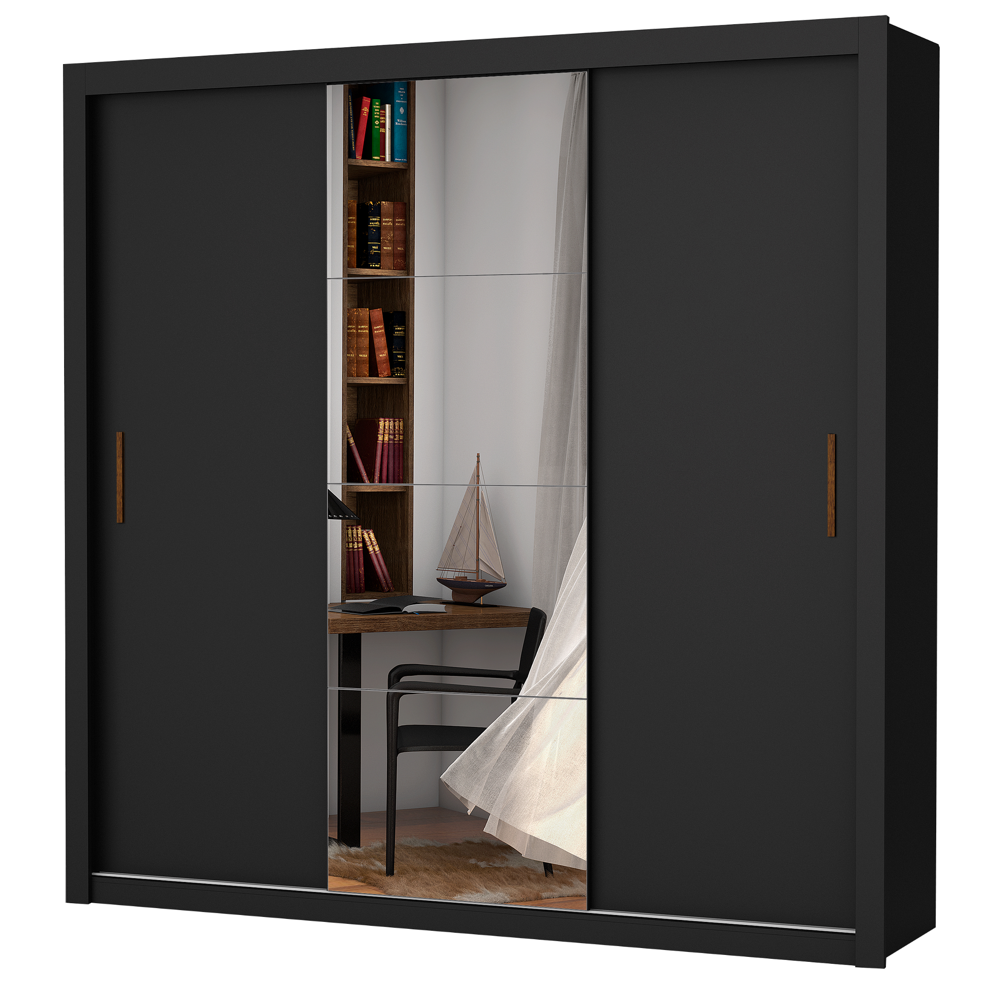 Guarda-Roupa 3 Portas Veneza/Clara/Berlim Plus (1 porta espelhada) 1,855 m Preto – CARIOCA MÓVEIS
