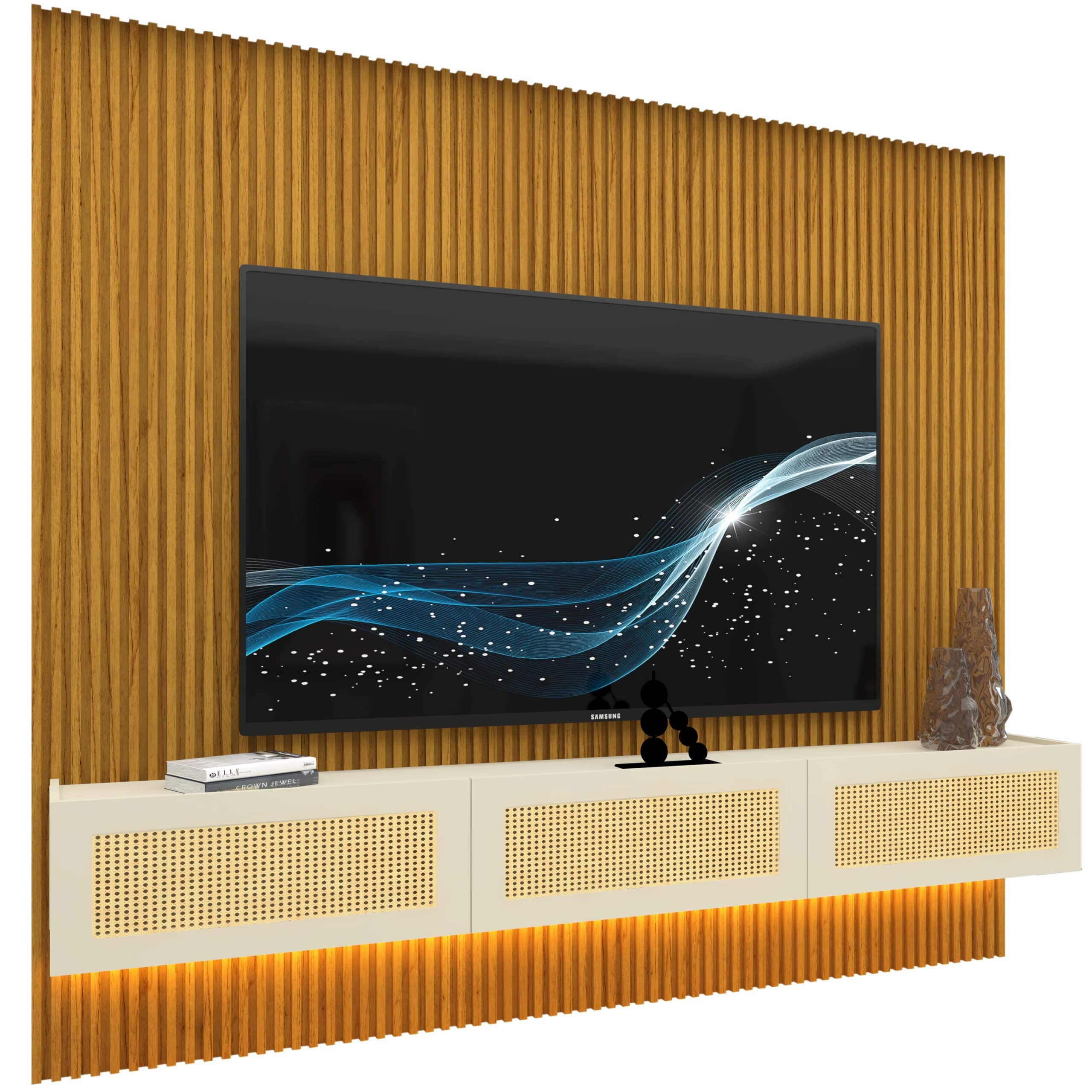 Home Suspenso até 85″ Supremo Ripado 218 Naturale com Nicho Native Off White – GELIUS