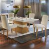 Mesa Ágata 120 Canto Copo Imbuia /Off White com 4 Cadeiras Athenas Creme – RUFATO