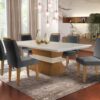 Mesa Ágata 180 Canto Copo Off White/Imbuia com 6 Cadeiras Athenas Cobre – RUFATO