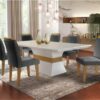 Mesa de Jantar Ágata Imbuia e Off White – 6 Cadeiras Athenas Azul – 180×90