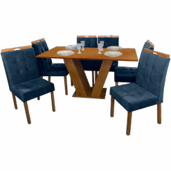 Seja o primeiro a avaliar “Mesa de Jantar Ágata Imbuia e Off White – 6 Cadeiras Athenas Azul – 180×90” Cancelar resposta