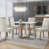 Mesa Atlas Mel/Off White Canto Copo 120×80 com 4 Cadeiras Lisboa Cinza – ART ASSENTOS