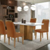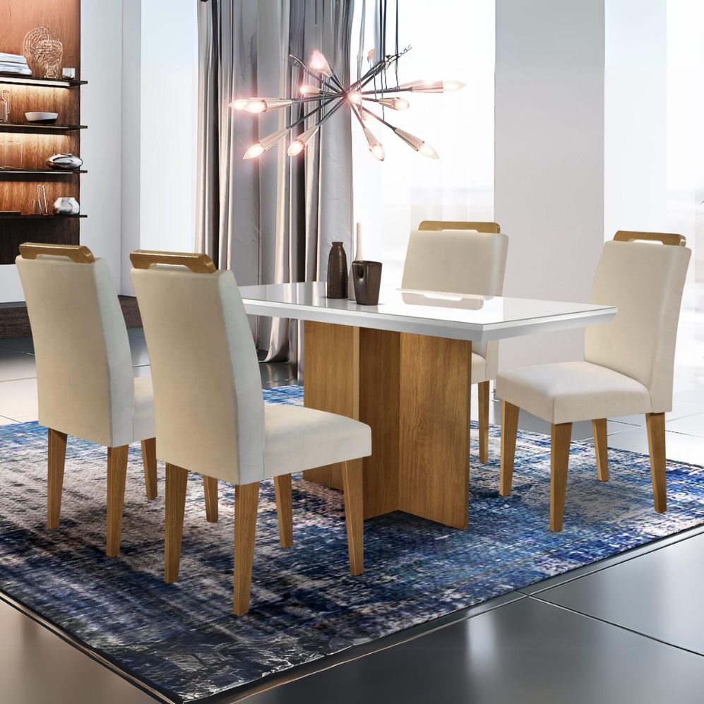 Mesa Berlim 120 Canto Copo Imbuia com 4 Cadeiras Athenas Creme – RUFATO