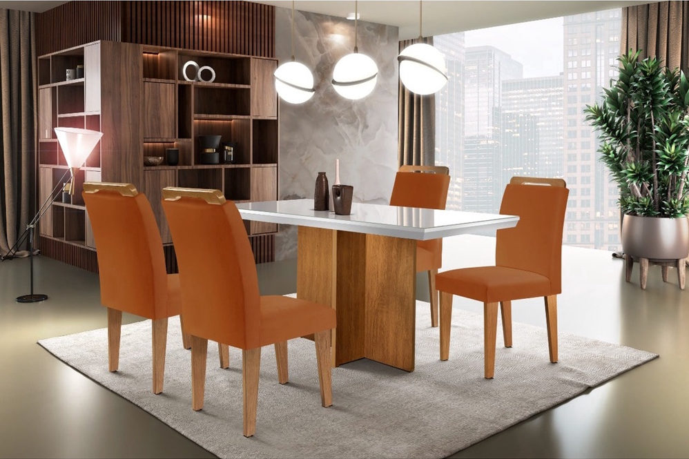 Mesa de Jantar Berlim Imbuia – 4 Cadeiras Athenas Cobre – 120×80