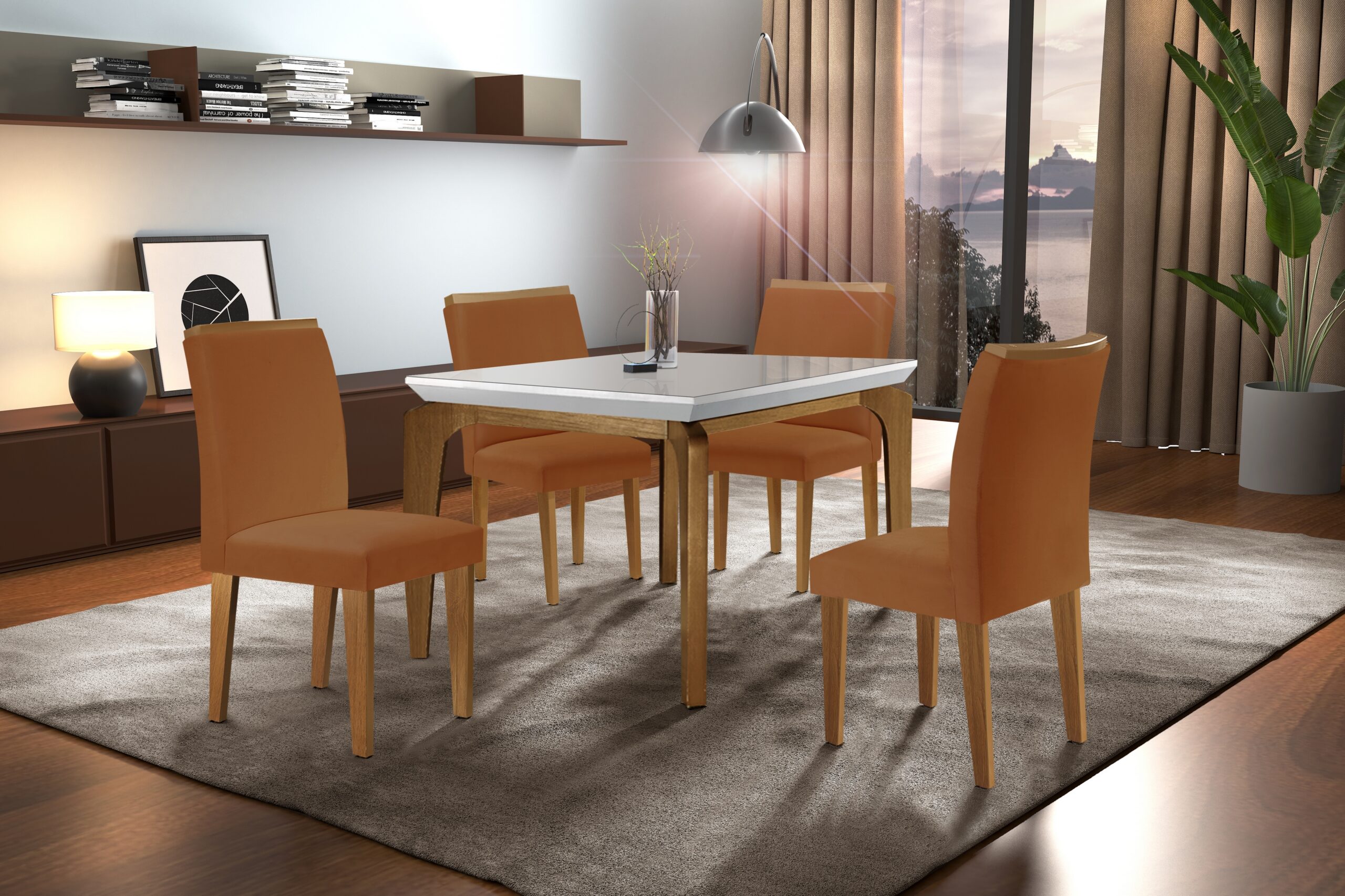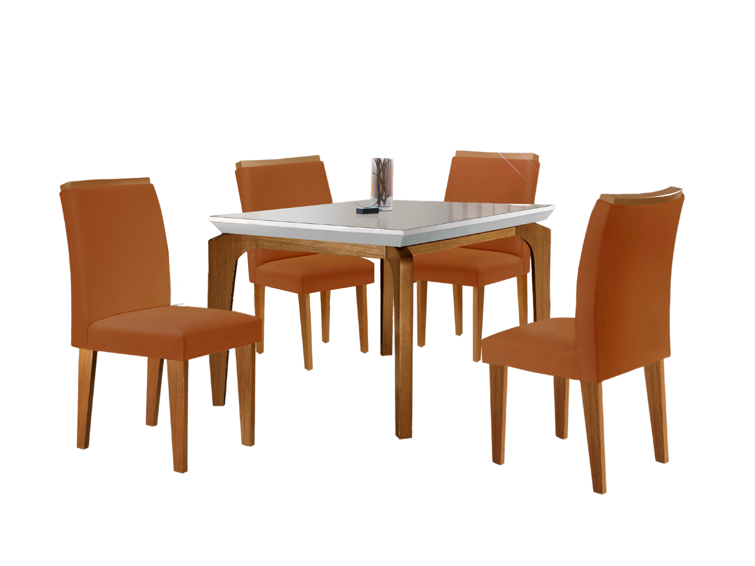 Mesa Londrina 120 Canto Copo Imbuia/Off White com 4 Cadeiras Athenas Cobre – RUFATO