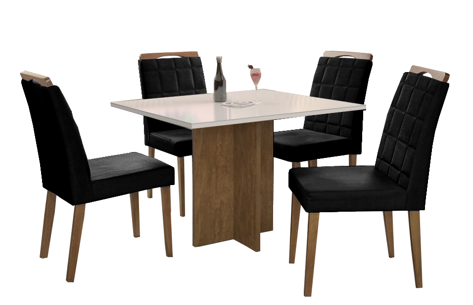 Mesa Los Angeles Canela/Off White 80×120 cm com 4 Cadeiras Las Vegas Preto – MINASPLAC