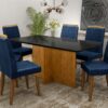 Mesa Los Angeles Cinamono/Off White Canto Reto 80×160 cm com 6 Cadeiras Las Vegas Preto – MINASPLAC