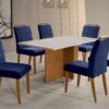 Mesa Los Angeles Cinamono/Preto Canto Reto 80×160 cm com 6 Cadeiras Las Vegas Azul – MINASPLAC