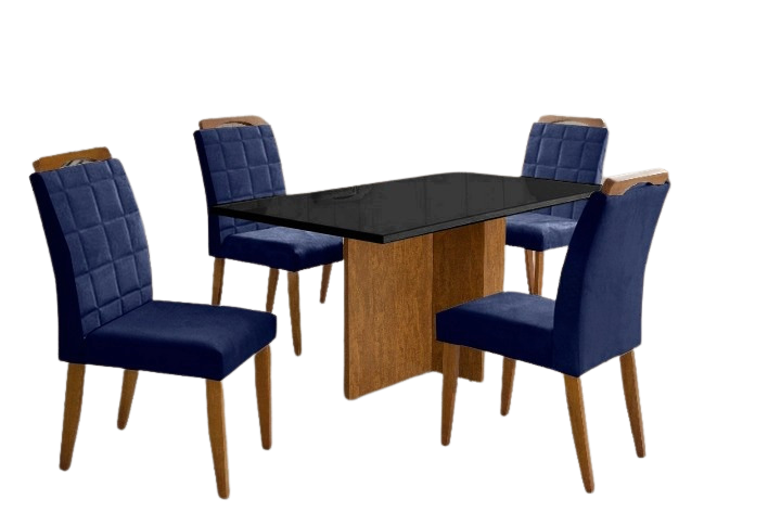 Mesa Los Angeles Cinamono/Preto 90×90 cm com 4 Cadeiras Las Vegas Prata – MINASPLAC