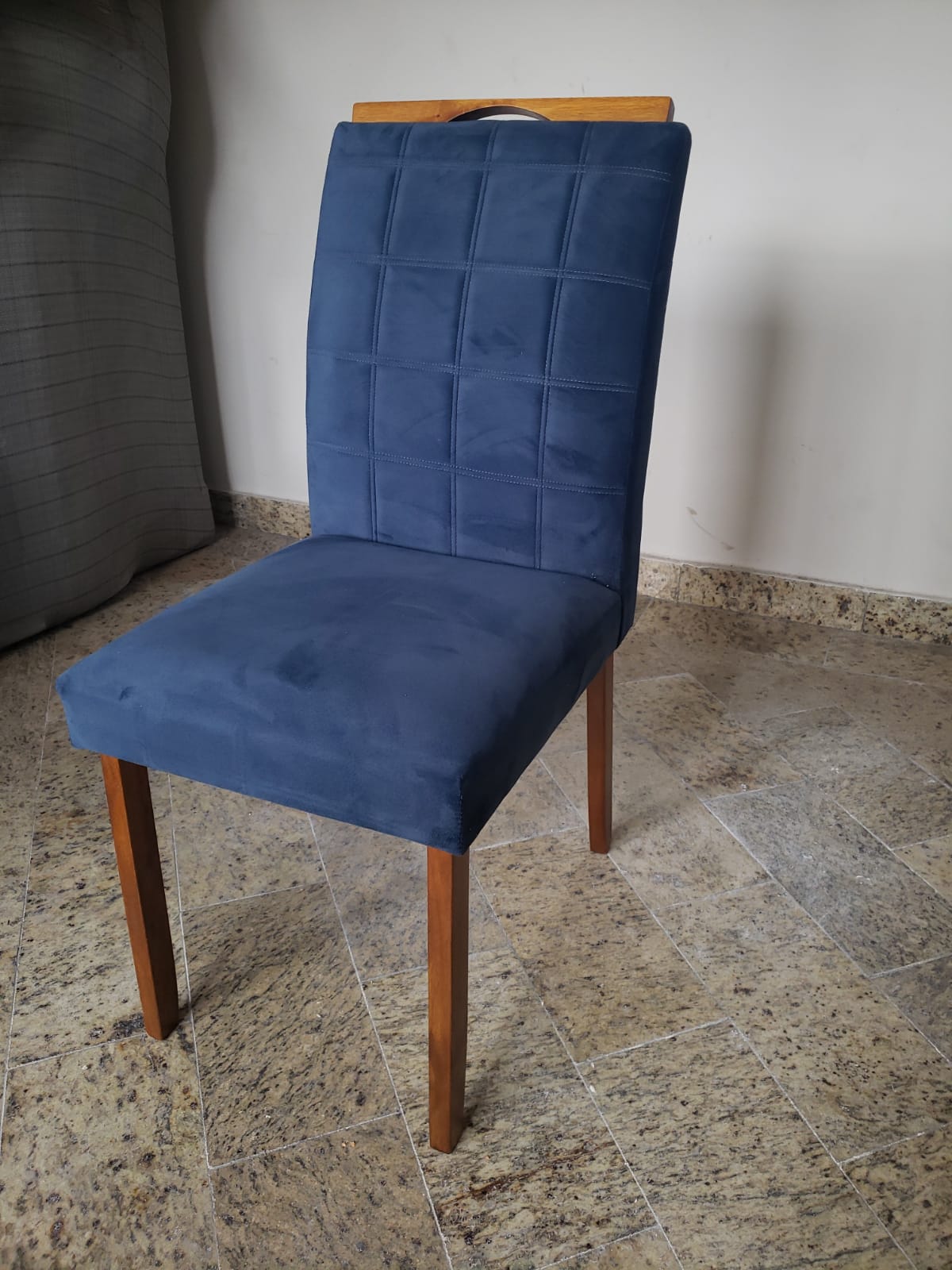 – Assento em veludo em Azul