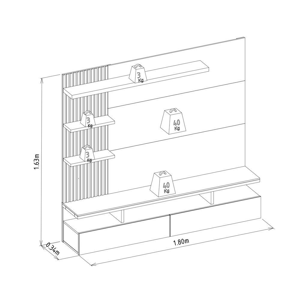 Espaço útil para TV no painel (LxAxP) : 1,36 x 1,03 x 0,29m