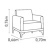 Sua estrutura em madeira de reflorestamento, seca e imunizada Pés cromados com 12 cm de altura Braços com espuma D26 Encostos com almofada solta e datalhe de puxão Assento fixo com espuma D28 e percintas elasticas, nas medidas: Altura: 76 cm Largura: 70 cm Profundidade: 66 cm