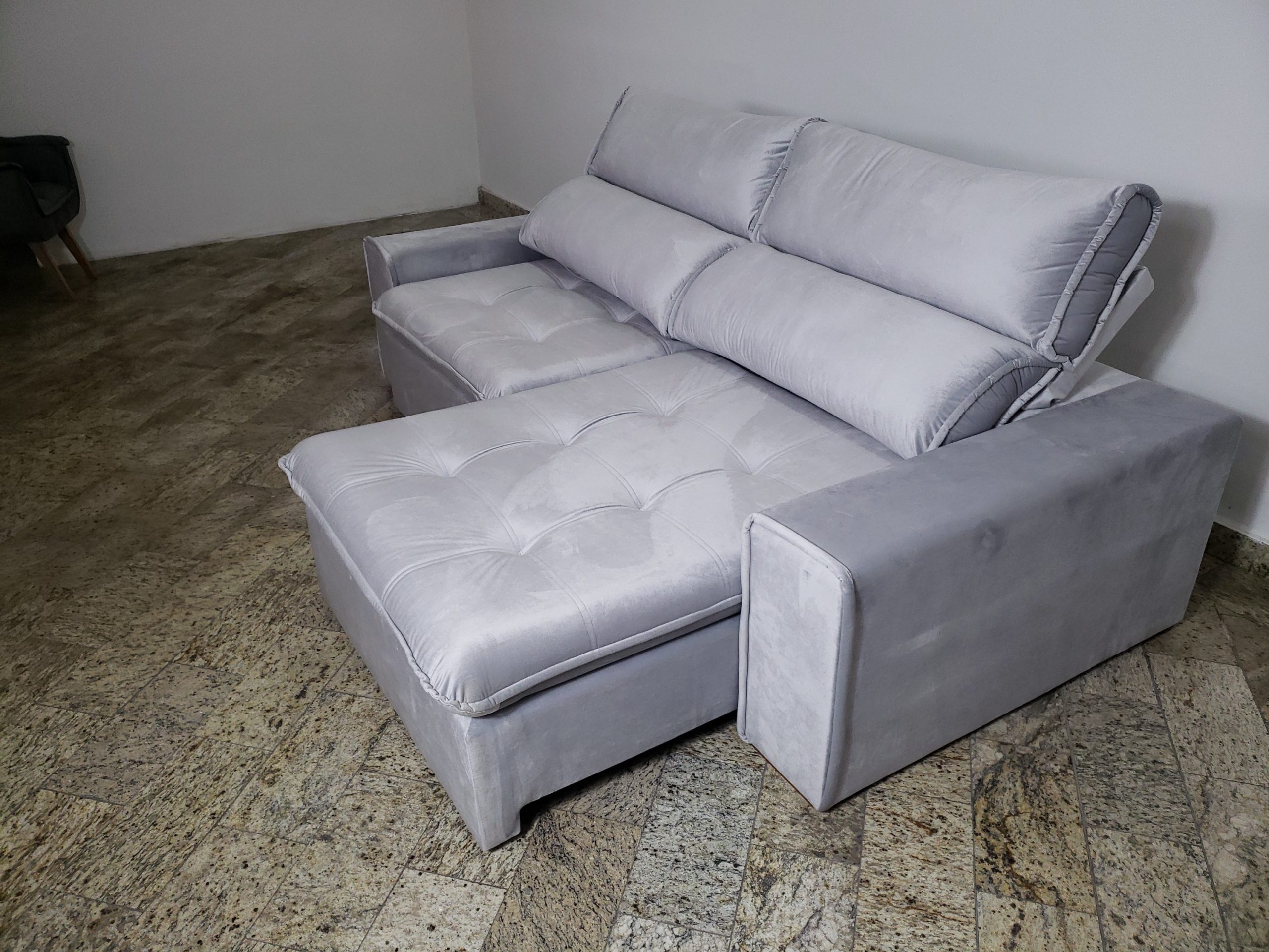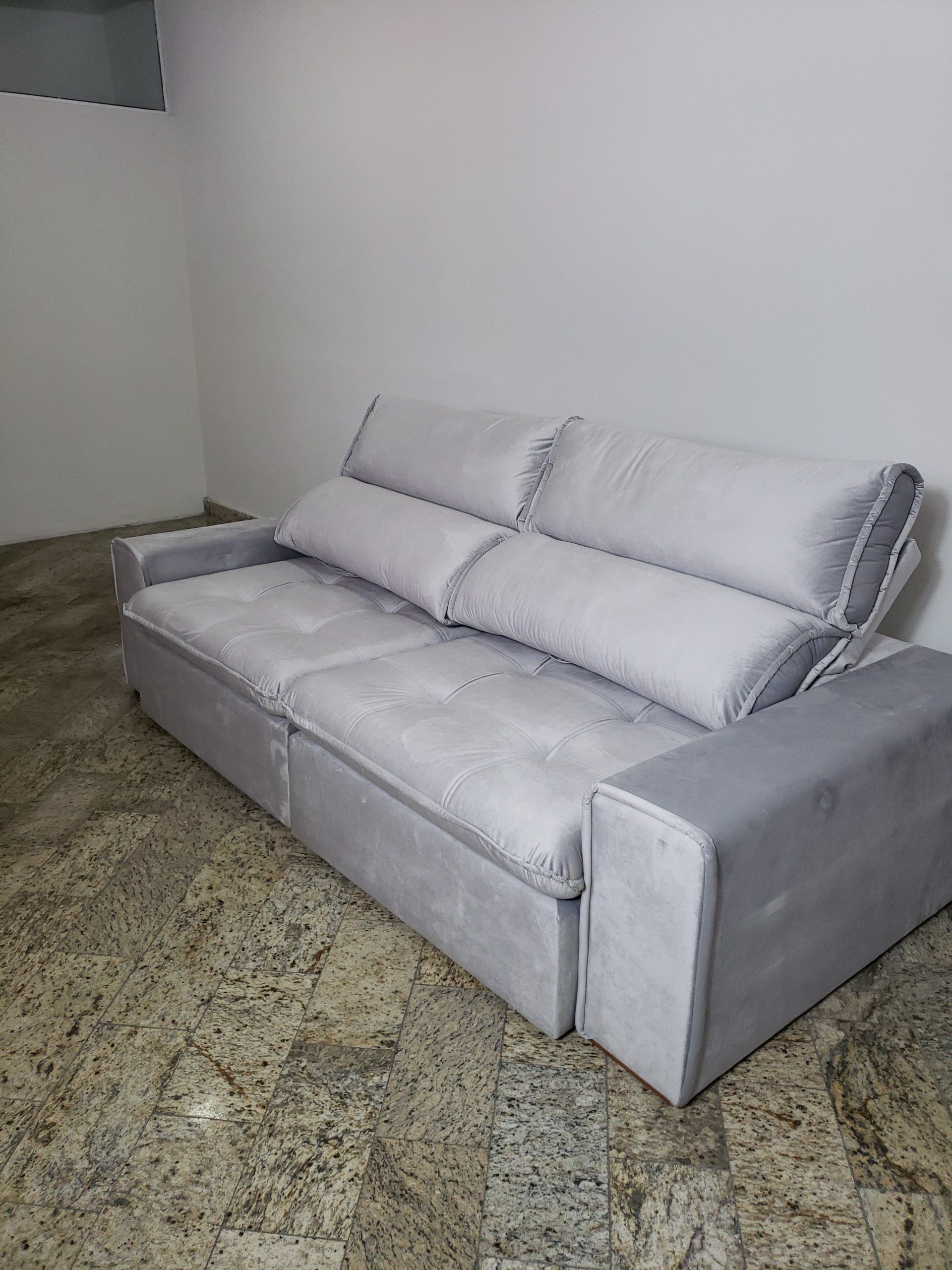 | MEDIDAS | Altura: 105 cm x Largura: 250 cm x Pillow: 25 cm X Comprimento (Aberto): 180 cm X Comprimento (Fechado): 122 cm |