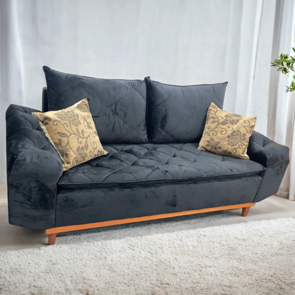 Sofá Living Berlim Veludo Preto 2,00 m – BOARETO